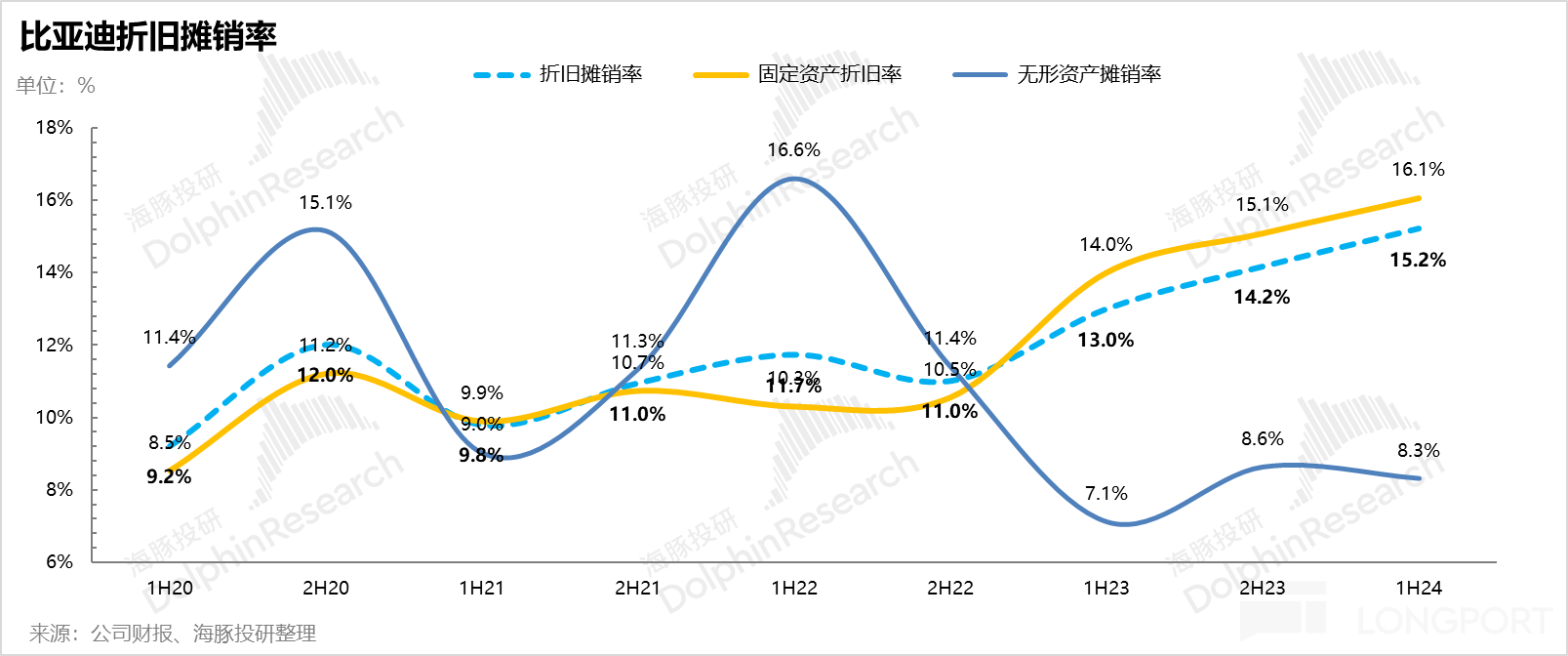 那么这种情况下,在海豚君看来,而 2024 年上半年还在加速上升中。其他新能车公司要认真分析的毛利率到它这里,单车摊折费用绝对值每半年都是在减少的,